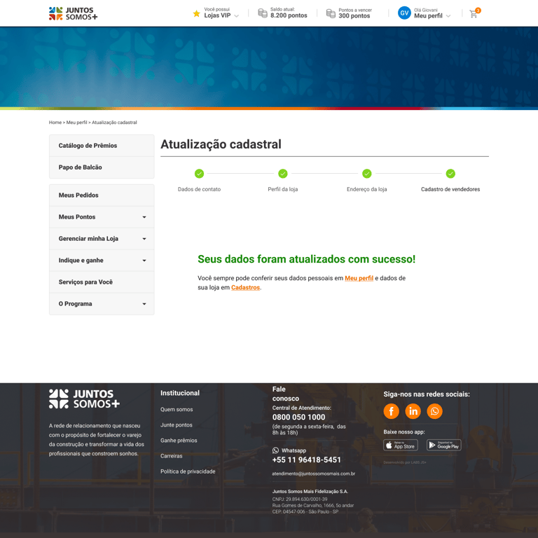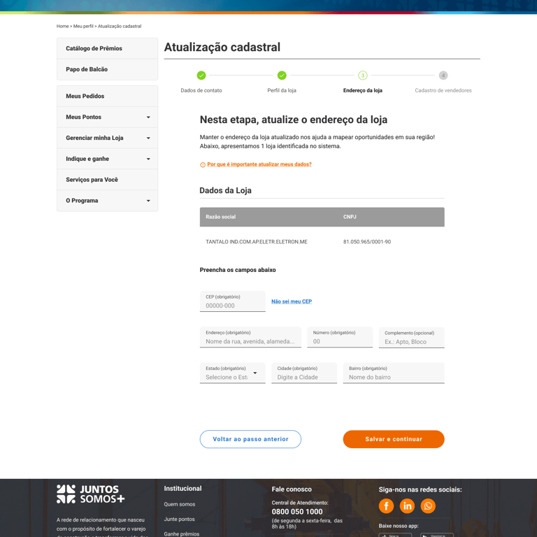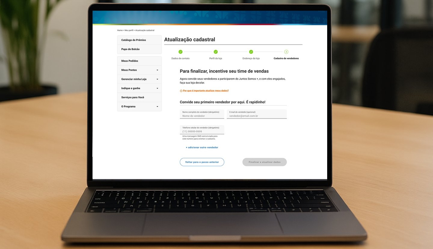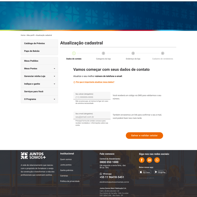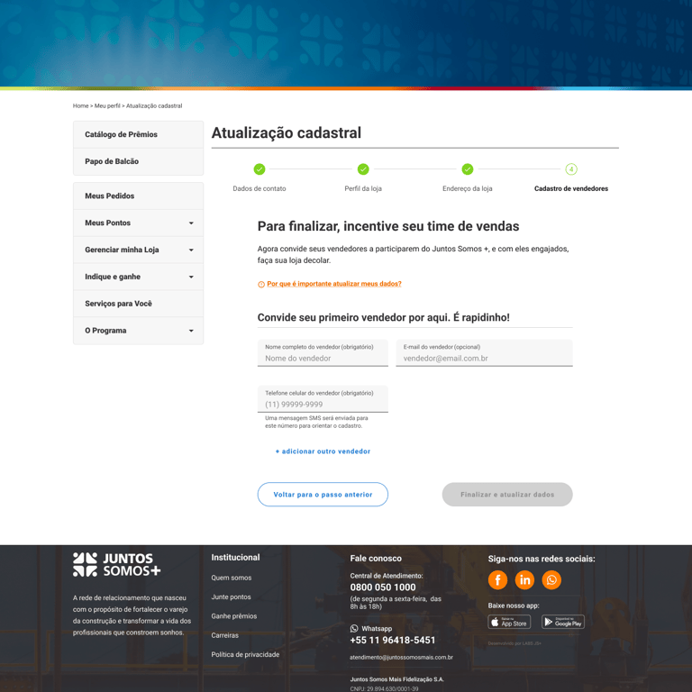 O programa Juntos Somos + precisava garantir dados atualizados dos participantes — donos de lojas, gerentes e vendedores — para melhorar a personalização das campanhas e gerar mais engajamento com resgates e sorteios.
