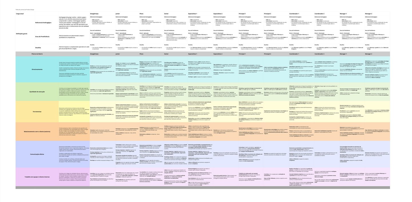 Como estruturar uma trilha de carreira em Product Design que reflita as reais competências da função, promova equidade nas promoções e incentive o desenvolvimento contínuo dos profissionais?