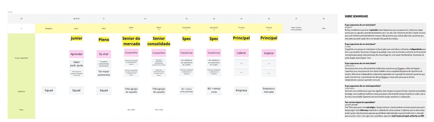 Com o crescimento da área de UX, a matriz antiga de avaliação deixou de ser suficiente. Designers tinham dúvidas sobre como evoluir e promoções tornaram-se subjetivas, dificultando retenção e desenvolvimento contínuo.