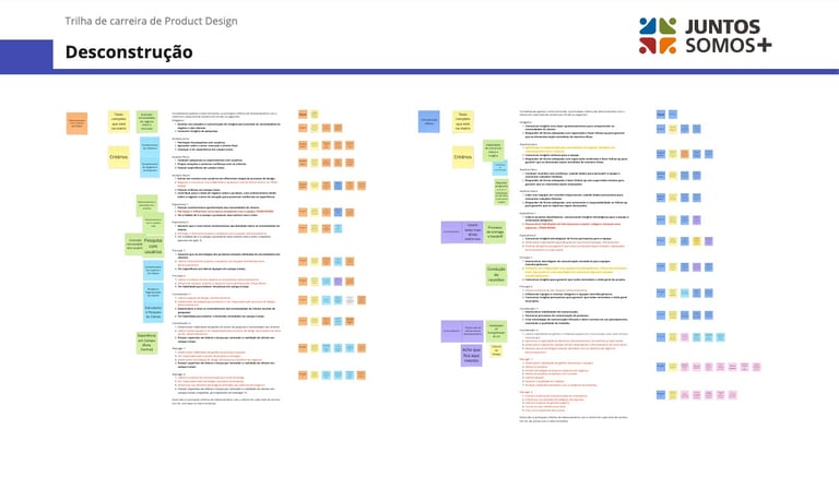 Atuei como um dos líderes do projeto, junto com o gerente de design (Lucas Ramalho) e o coordenador de design (Jean). Fui responsável por organizar os aprendizados, desconstruir e reconstruir a trilha alinhada à cultura da empresa e à realidade do papel de Product Design.