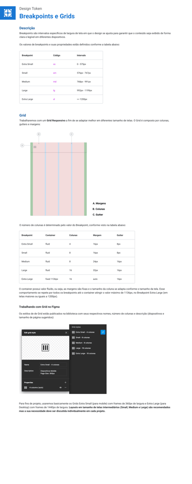 Cores, tipografias e grids que nos ajudavam a ter padrão e consistência nos projetos